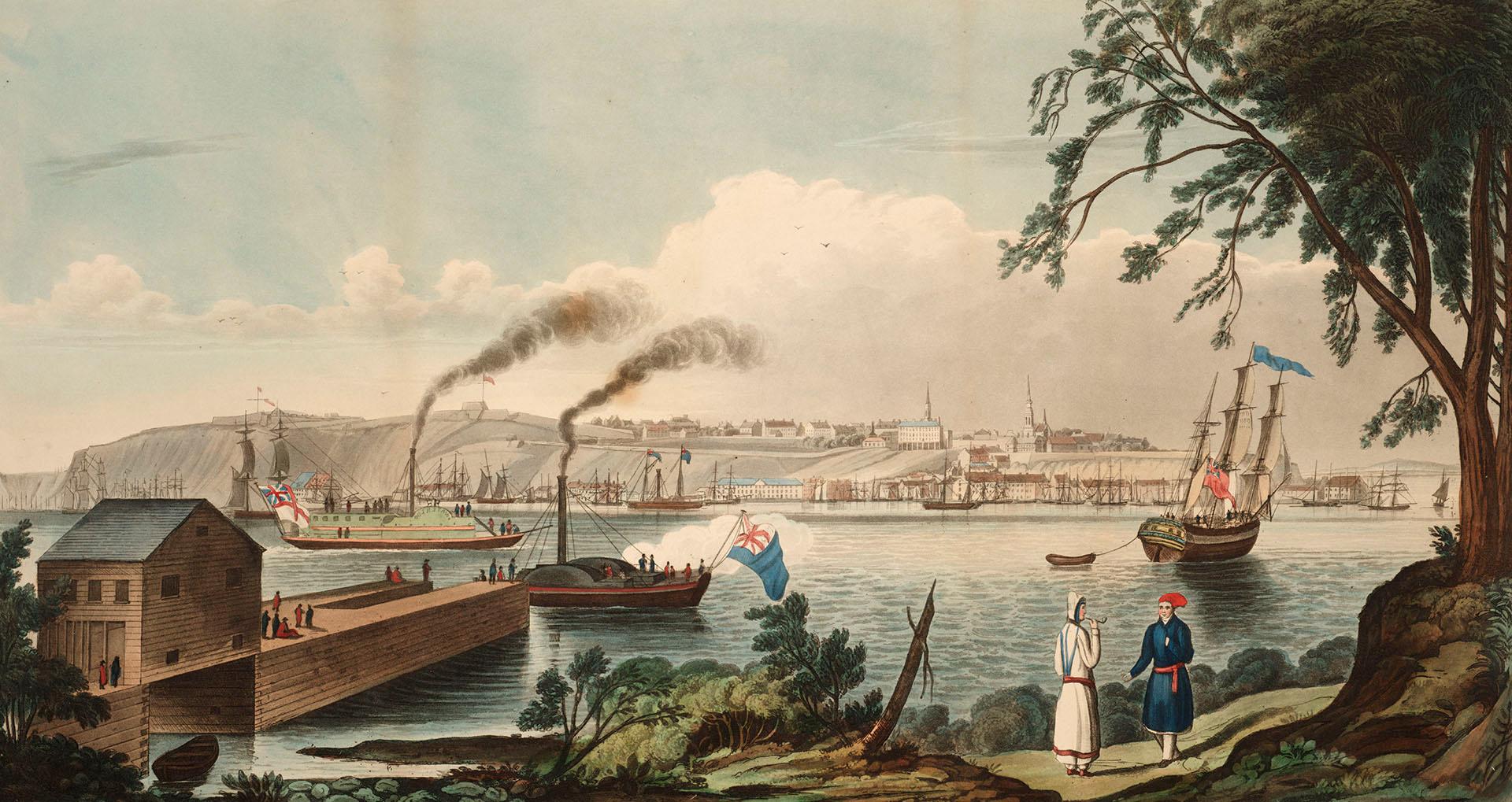 Digital archive Toronto, Toronto Public Library online collection, fonds Baldwin Collection of Canadiana, (JRR207), Quebec from Point Levi (Levis, Québec), 1828.
